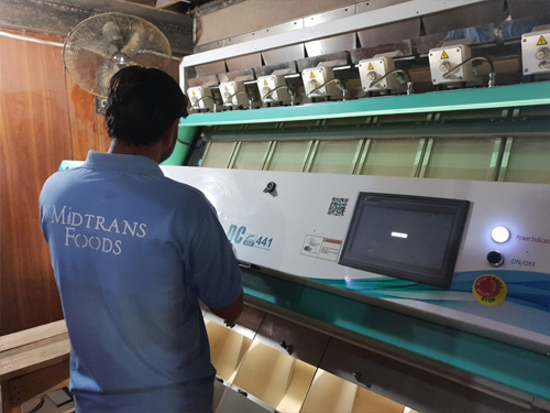 Adding another dimension and value addition for our Prestigious Customers, Midtrans Foods has established a processing facility spread on an area of 40,000 Square Feet that is within 8 Km from the main Karachi Port providing state of the art cleaning, Grading, Sortexing, Polishing and storage facilities to meet the demand and strict quality specifications of the end users.